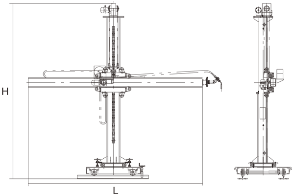 Options: 1, electric/manual mobile trolley 2, electric/manual cross fine-tuning 3, manned seat or platform 4, weld seam indication 5, monitoring system 6, flux delivery and recovery system